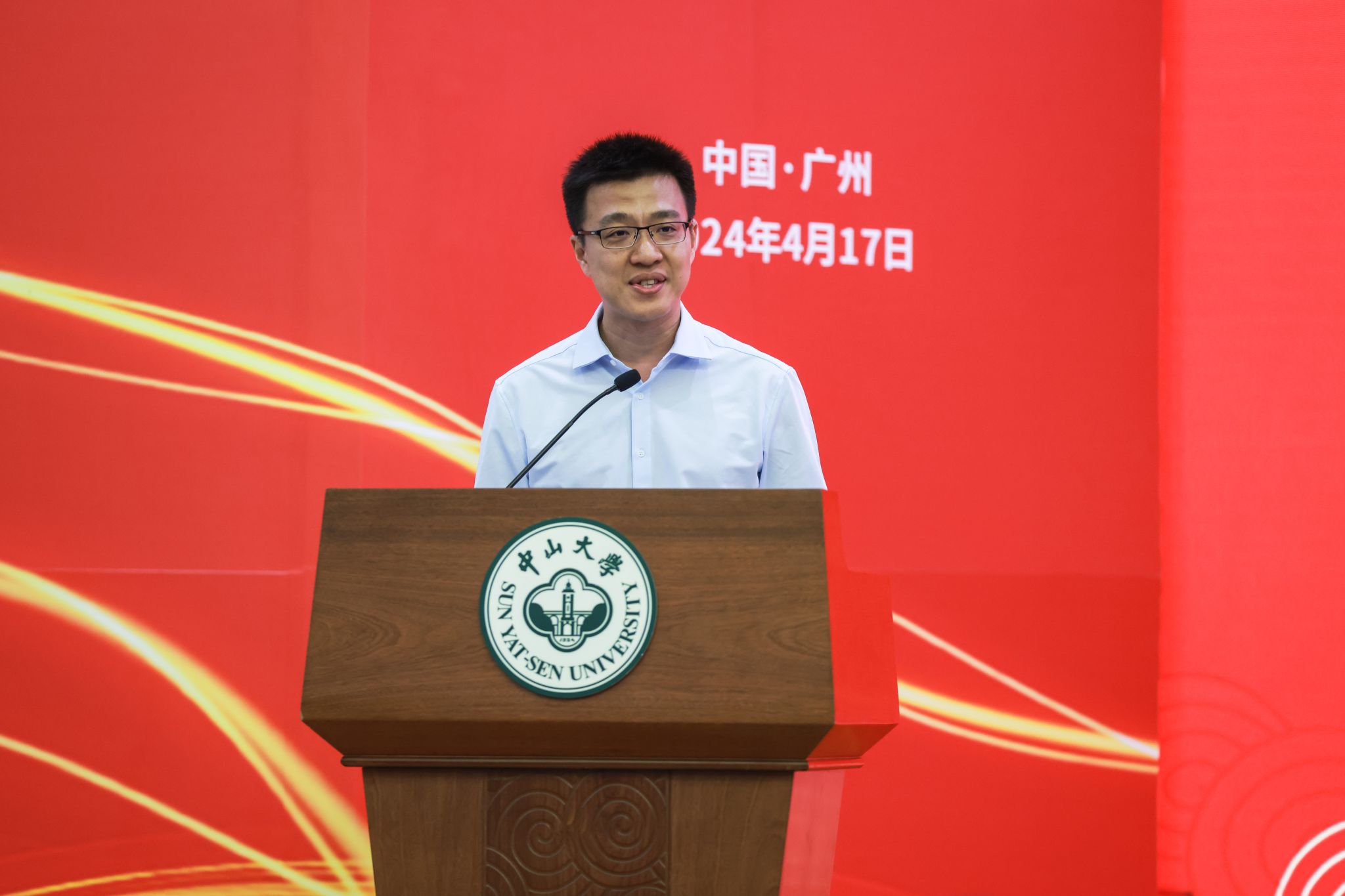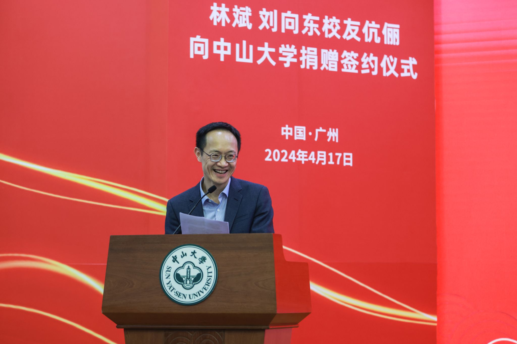 Xie Shi, vice president of Sun Yat-sen University, presides over the donation ceremony on April 17. [Photo by Li Wenrui]