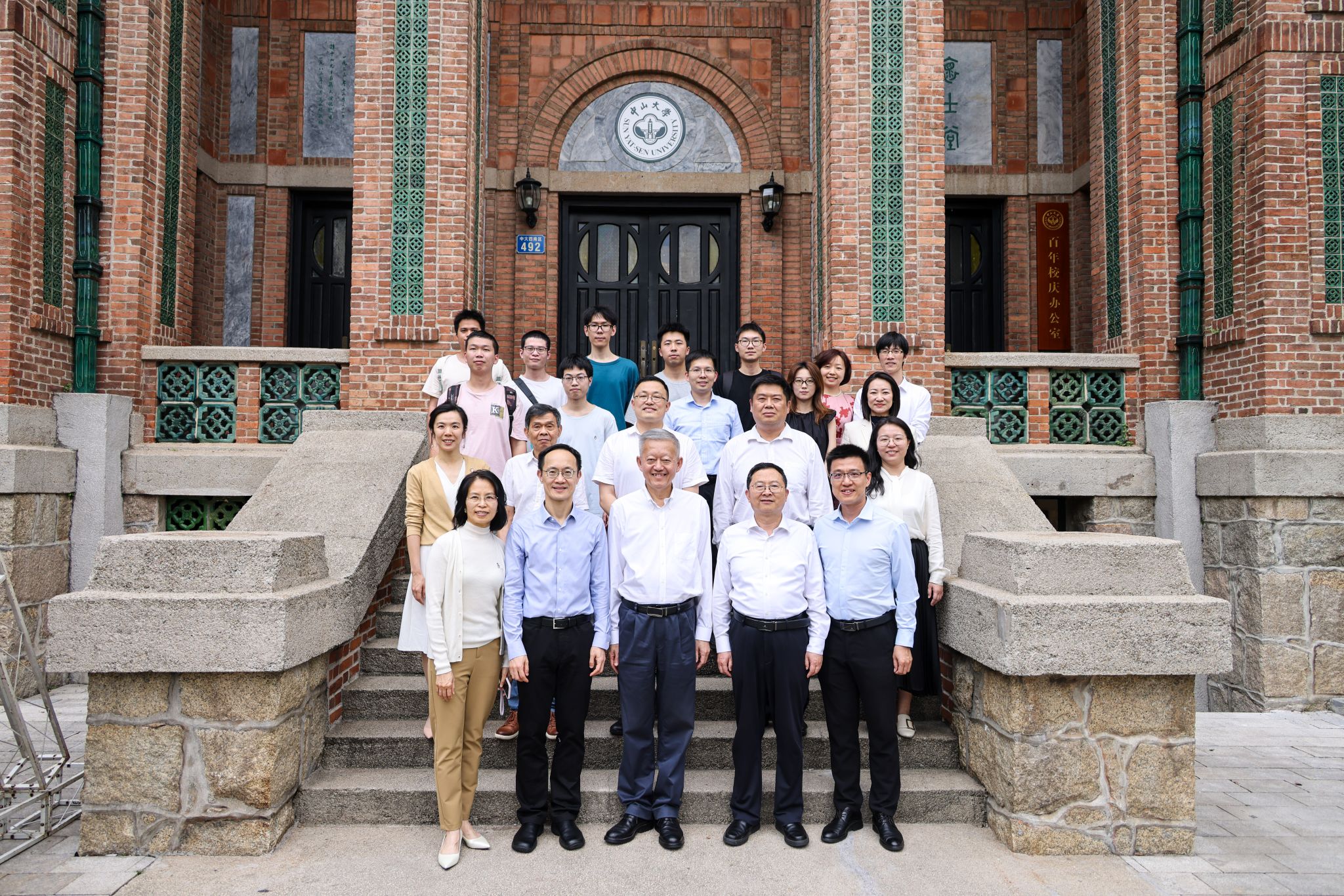 Lin Bin, Liu Xiangdong, leaders of Sun Yat-sen University and representatives of faculty and students pose for a group photo. [Photo by Sun Xue]