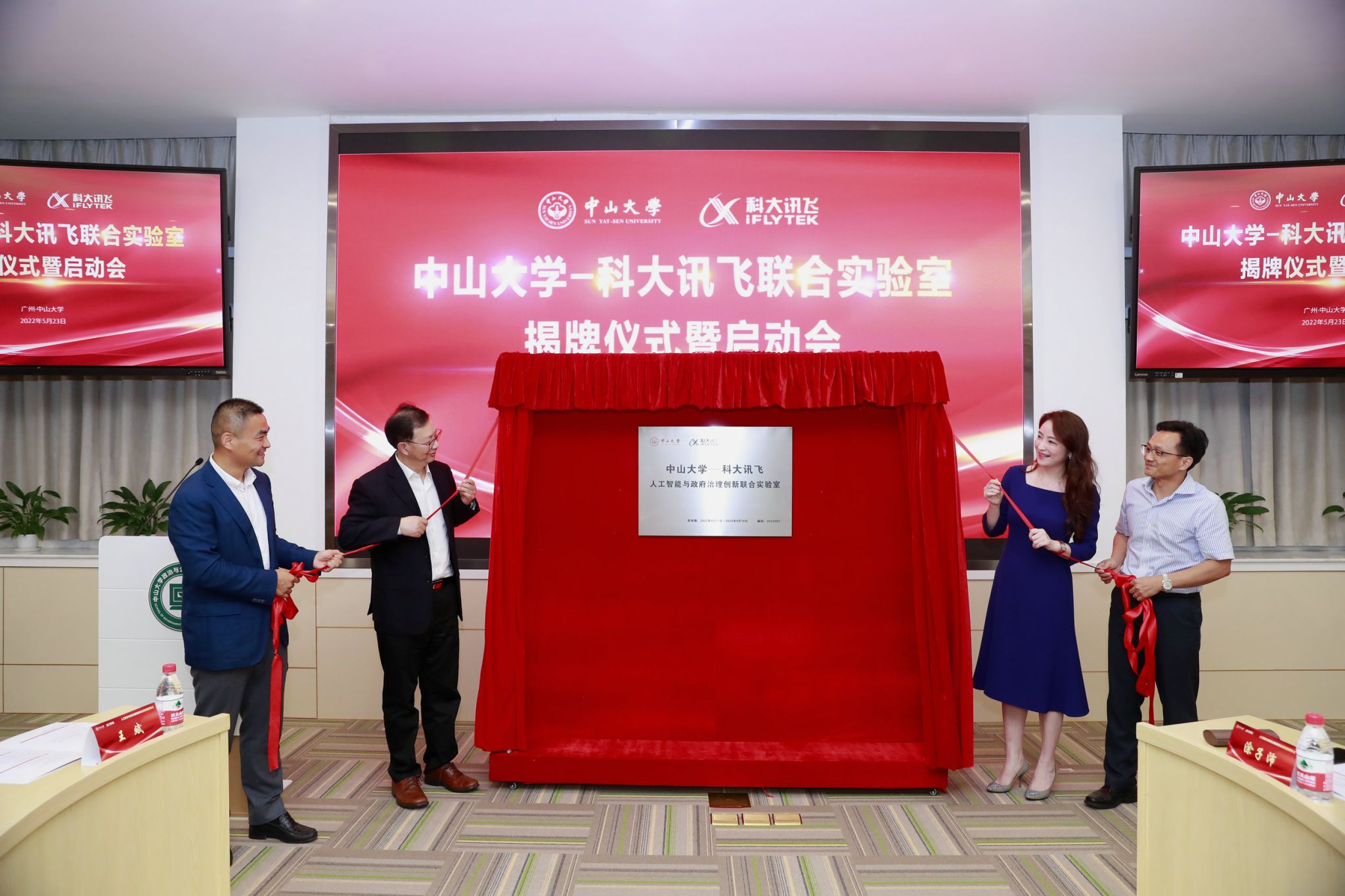 中大新聞網廣州5月25日電(通訊員王旭初)5月23日下午,中山大學-科大訊飛人工智能與政府治理創新聯合實驗室揭牌儀式暨啟動會在中山大學舉行。中山大學副校長蘭平,廣東省政務服務數據管理局副局長魏文濤,科大訊飛高級副總裁杜蘭出席會議并致辭。活動還邀請了廣東省政務服務數據管理相關部門、科研院所以及企業的20多位領導專家共同見證揭牌儀式。活動由中山大學政治與公共事務管理學院副院長葉林主持,中山大學政治與公共事務管理學院院長譚安奎、科大訊飛副總裁解飛、中山大學科學研究院橫向處副處長李捷及科大訊飛相關部門負責人出席活動。