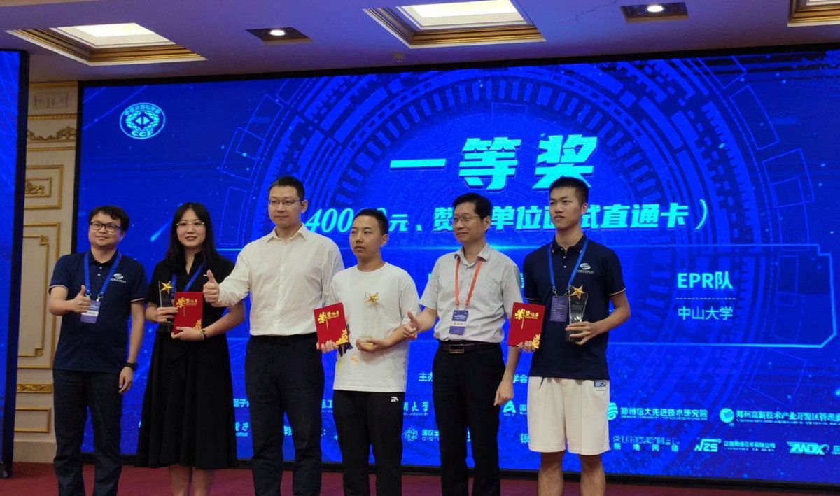中山大學“EPR隊”代表羅鏡泉(右一)在頒獎典禮現場(來源:計算機學院)