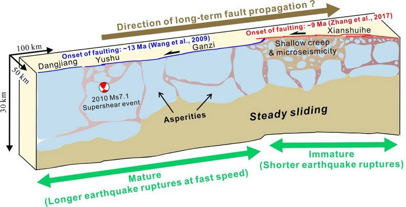上述研究以中山大學地球科學與工程學院博士研究生喬鑫為第一作者,張培震院士與周宇教授為共同作者,發表于國際地學權威雜志Earth and Planetary Science Letters,題目為“Along-strike variation in fault structural maturity and seismic moment deficits on the Yushu-Ganzi-Xianshuihe fault system revealed by strain accumulation and regional seismicity”。