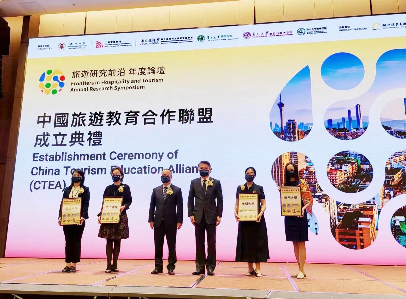 中大新聞網廣州10月25日電(通訊員丁婕)10月21日,中國旅游教育合作聯盟成立儀式在澳門大學舉行。該聯盟是由澳門大學、復旦大學、南開大學和中山大學(按校名拼音排序)共同倡議并發起,由中國的高校等組織自愿組成的非營利合作聯盟。澳門大學牽頭組織召開了首屆聯盟理事會,并主辦了首屆論壇。在聯盟成立儀式上,澳門特別行政區經濟財政司司長李偉農向聯盟4所院校代表頒發成立證書,各聯盟代表及與會嘉賓一同在線上和線下參與見證聯盟的成立,并一同參加旅游研究前沿年度論壇的剪彩儀式。