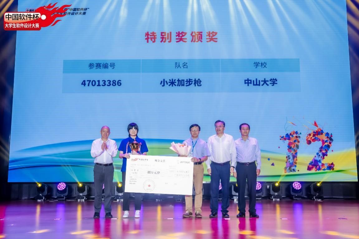 中大新聞網訊(通訊員孫興華)近日,第十二屆“中國軟件杯”大學生軟件設計大賽總決賽在南京落下帷幕。中山大學電子與通信工程學院2021級碩士生房若宸一人組隊“小米加步槍”, 在指導教師孫興華副教授悉心指導下,經過多輪緊張激烈的比拼, 榮獲本屆大賽的最高獎項——一等獎特別獎,獎勵金8萬元。這是我校在“中國軟件杯”大賽歷史上取得的最好成績,首次捧得代表最高榮譽的“中國軟件杯”,我校同時獲得“最佳學校組織”獎,孫興華副教授榮獲“最佳指導教師”。這也是該賽事首次將特別獎頒發給個人參賽團隊。