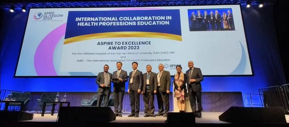 中大新聞網訊(通訊員彭福祥、章智琦)8月26-30日,全球最大的醫學教育學術組織歐洲醫學教育聯盟(AMEE)在蘇格蘭格拉斯哥舉行2023年全球年會,來自108個國家和地區的近4300余位全球醫學教育專家代表現場參會。中山大學附屬第一醫院(以下簡稱“中山一院”)榮獲ASPIRE-to-Excellence(國際合作)大獎,成為國際上首家獲此殊榮的醫療機構,也是中國大陸首家獲得AMEE國際醫學教育成果獎的單位。
