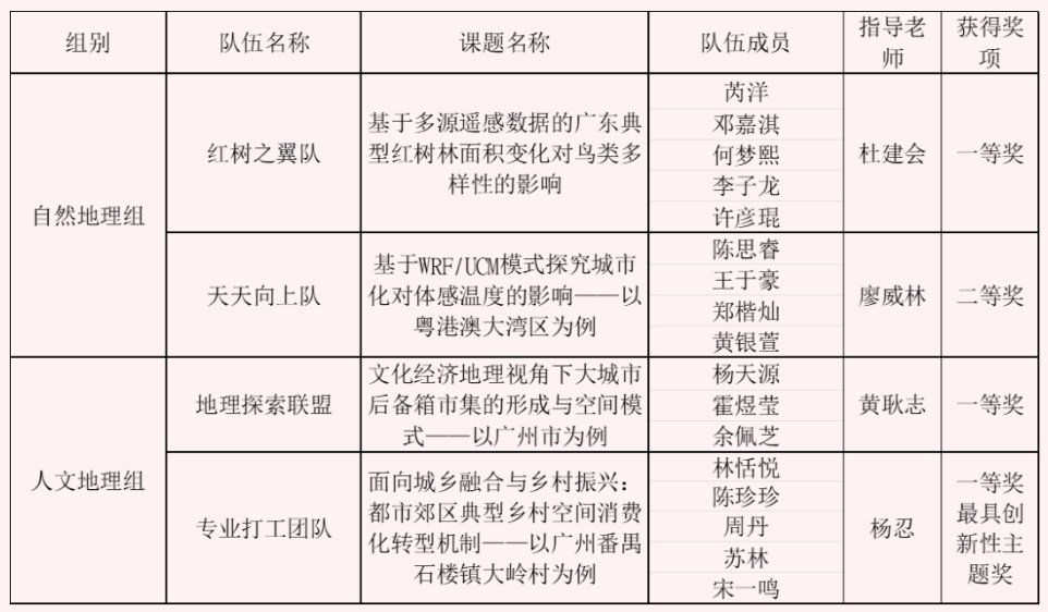 在大賽過程中,來自不同地域、不同高校的隊伍相互交流學習,以賽促練共成長。地理科學與規劃學院四支隊伍在比賽中均展現出中大地理學子良好的科學素養和積極向上的精神風貌,在南方賽區中脫穎而出成功晉級,在總決賽上斬獲佳績。
