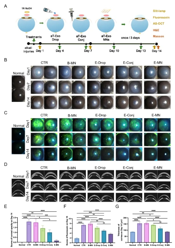 圖5. MNs遞送aT-Exo干預小鼠角膜堿燒傷