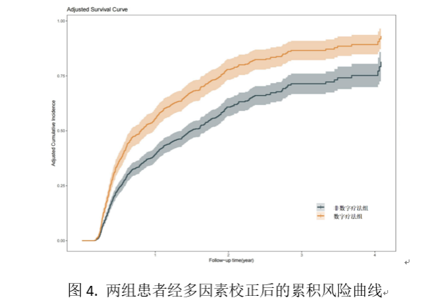 研究結果表明,接受弱視數字療法治療的患兒,其發生眼軸增長過快事件的可能性相較于未接受該療法的患兒增加了65%(圖4)。在遠視患兒中,這一傾向更為顯著。