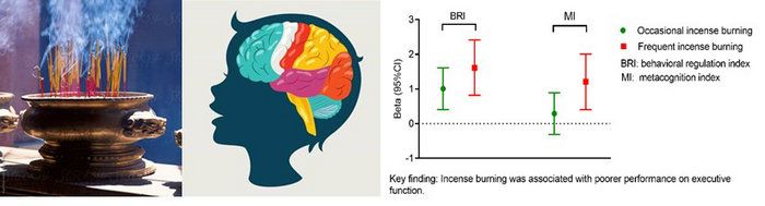 中大新聞網(wǎng)訊(通訊員桂曌環(huán))“燒香”的歷史由來(lái)已久,在亞洲和阿拉伯灣地區(qū)非常普遍,是當(dāng)?shù)鼐用窦雷妗莘稹艋諝饣蜥尫畔銡舛?jīng)常采取的方式。調(diào)查顯示,廣州1/4的家庭有“燒香”習(xí)慣;臺(tái)灣和新加坡,因道教和佛教的興盛,“燒香”習(xí)俗更為普遍,約1/3至一半的家庭會(huì)在家里燒香。一根香燃燒時(shí)間大約1~1.5小時(shí),期間可釋放多種空氣污染物,包括顆粒物,氣體污染物,多環(huán)芳香烴和揮發(fā)性有機(jī)化合物等,其中多環(huán)芳香烴屬于一類致癌物。研究發(fā)現(xiàn),燃燒1克佛香產(chǎn)生的顆粒物可高達(dá)45 mg,遠(yuǎn)多于香煙燃燒產(chǎn)生的顆粒物(10 mg)。已有研究表明“燒香”和人群心血管疾病、肺癌以及孕期高血壓等存在關(guān)聯(lián)。兒童時(shí)期是大腦快速發(fā)育的關(guān)鍵時(shí)期,在此期間接觸不良環(huán)境因素可能會(huì)造成即刻或?qū)?lái)的健康危害。家中“燒香”是否也會(huì)影響兒童認(rèn)知功能?相關(guān)研究較少且結(jié)論尚不明確。