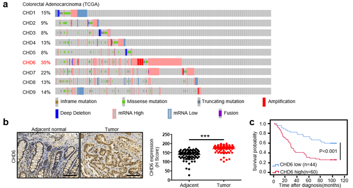 中大新聞網訊(通訊員簡文楊、戴希安)近日,中山大學附屬第六醫院胃腸病學研究所李孟鴻、劉慶欣團隊在最新的研究中發現,一種染色質重塑蛋白CHD6在結直腸癌中高表達,并且與病人的不良預后顯著相關。這意味著CHD6有望成為結直腸癌治療的新靶點。此外,研究還指出,CHD6的高表達也預示著對EGFR抑制劑西妥昔單抗更敏感,可能成為預測其敏感性的分子標記,為腫瘤的個體化用藥提供了新思路。