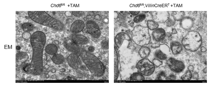 電鏡下觀察野生型和腸特異性敲除CHD6小鼠的線粒體形態