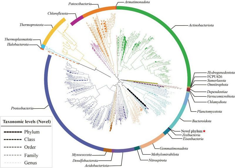 圖1. 基于細菌與古菌的MAGs(metagenome-assembles genomes)構建系統進化樹