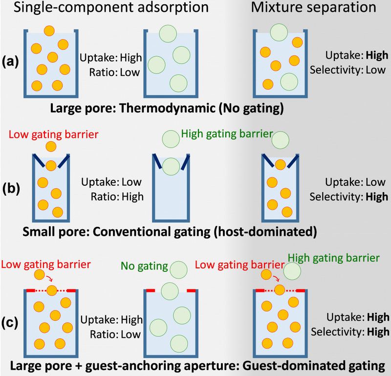 客體主導的門控吸附行為可以解釋很多不合常理的吸附分離行為,也為解決吸附量和選擇性之間的矛盾提供了一個解決方案。