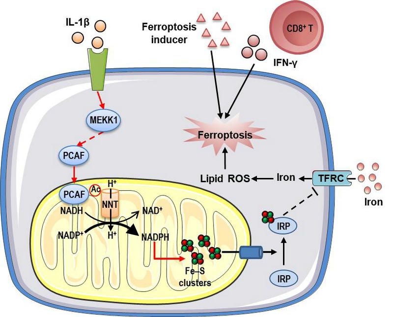 中大新聞網訊(通訊員趙現廷)5月25日,中山大學腫瘤防治中心徐瑞華教授團隊在國際知名期刊Molecular Cell發表了題為“白介素1β(IL-1β)誘導NNT乙酰化促進腫瘤細胞鐵硫簇穩態介導免疫治療抵抗”的研究成果。該成果揭示了白介素1β可通過誘導腫瘤細胞線粒體內膜蛋白NNT乙酰化從而調控鐵硫簇穩態,進而抑制腫瘤細胞鐵死亡并介導免疫治療抵抗,阻斷IL-1β-NNT乙酰化軸可顯著提高免疫治療療效。