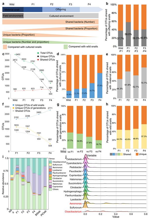針對(duì)這一科學(xué)問題,中山大學(xué)中山醫(yī)學(xué)院吳忠道教授團(tuán)隊(duì)于2023年11月29日在Microbiome雜志上在線發(fā)表了題為“Core gut microbes Cloacibacterium and Aeromonas associated with different gastropod species could be persistently transmitted across multiple generations”的研究論文。