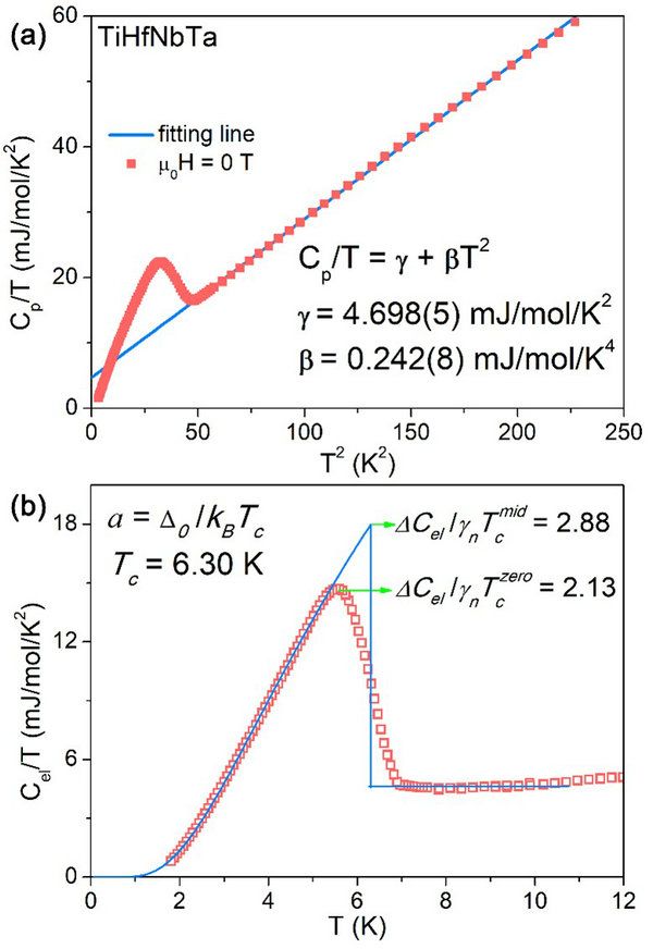 圖1. 中熵合金TiHfNbTa在低溫下的比熱數(shù)據(jù)