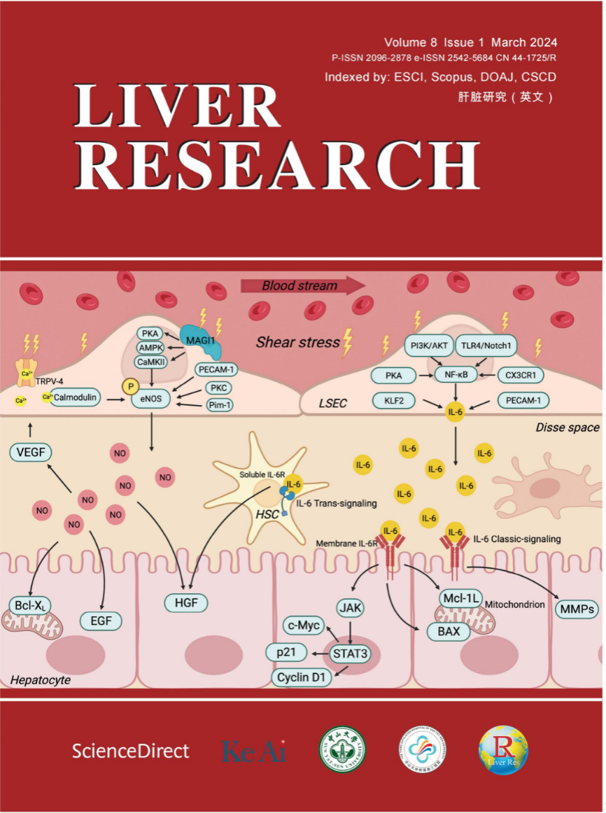 自創刊以來,Liver Research已被ESCI、CAS、Cabells Journalytics、Scopus、DOAJ、Embase、CSCD(核心庫)等多個數據庫收錄,還成功入選廣東省高水平科技期刊建設項目(2023年),并連續兩次入選科技期刊世界影響力指數(WJCI)報告,連續三年榮獲“中國國際影響力優秀學術期刊”稱號。展望未來,Liver Research將繼續致力于為國內外肝病學術發展的創新性成果提供國際交流平臺,努力躋身世界一流期刊行列。