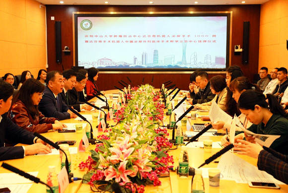 3月15日,我校腫瘤防治中心泌尿外科達芬奇機器人手術1000例新聞發布會暨“達芬奇手術機器人中國泌尿外科臨床手術教學示范中心”在中心遠程會議室舉行。腫瘤防治中心黨委書記武少新、副院長劉卓煒、手術麻醉科主任曾維安,直觀復星公司CCO劉雨,及多家新聞媒體出席了本次掛牌儀式。