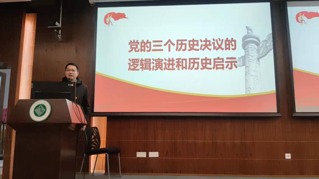 為更深刻理解十九屆六中全會的深刻內涵和重要意義,本次活動邀請張東老師講授題為《黨的三個歷史決議的邏輯演進和歷史啟示》的專題黨課。張老師首先闡釋了三個歷史決議的邏輯演進,通過對決議產生的歷史背景、主要內容以及重要意義講解,帶領大家深刻領悟每個歷史決議背后的深刻內涵。張老師還從三個歷史決議共同特點出發,分析比較了三個歷史決議之間的關系,指出三個歷史決議雖是在不同歷史階段提出,但都形成于重要歷史關頭,發揮著重要歷史作用。第三個歷史決議,讓全黨從百年奮斗中看清我們為什么能夠成功、弄明白未來我們怎樣才能繼續成功,從而更加自覺地踐行黨的初心使命,在新時代更好地堅持和發展中國特色社會主義,以更加昂揚姿態邁進新征程,建功新時代,奪取新勝利。