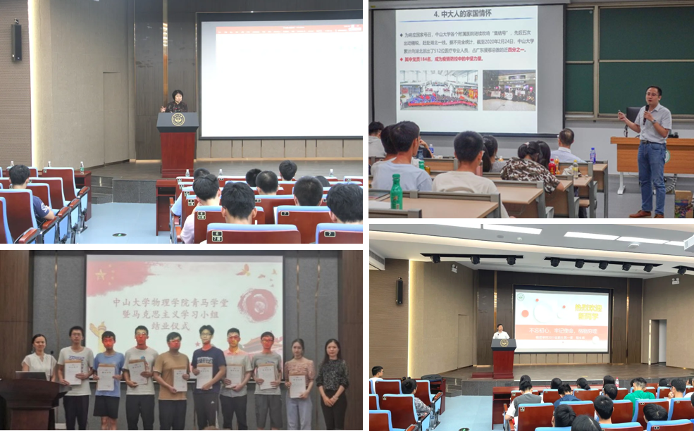 黨委書記講黨課(左上),黨支部書記講黨課(右上),青馬學堂(左下),院長講黨課(右下)(來源:物理學院)