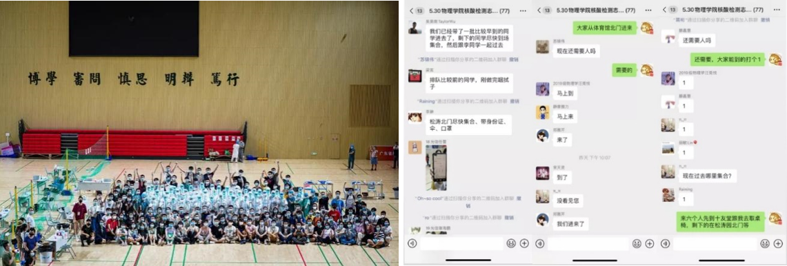 學生黨支部立即響應,保障核酸檢測。今年5月,本土疫情突襲廣州,學校響應防疫要求開展全員核酸檢測,物理學院學生黨支部率先響應學校號召,半小時內組建近50人的志愿隊伍,在現場迅速建立起精簡高效的核酸檢測運作流程,一直奮戰到凌晨兩點,為全校近兩萬師生按時完成核酸檢測任務貢獻了力量,同時為之后的大規模核酸檢測探索了更高效的組織流程,積累了寶貴經驗。