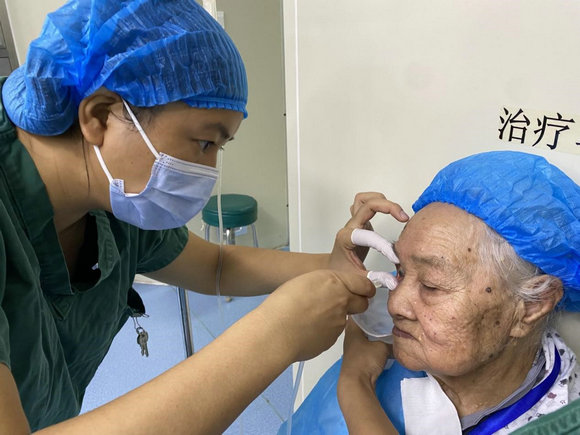 陳薏玲為百歲老人做術(shù)前準(zhǔn)備(來源:中山眼科中心)