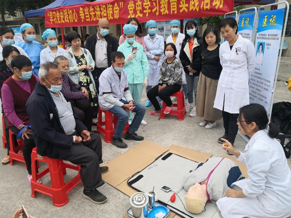 4月10日,學院黨委組織師生黨員到三水區(qū)南山鎮(zhèn)為基層群眾開展義診和急救科普宣傳(來源:護理學院)
