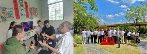 左:到柯木灣村開展鄉村調研;右:工商管理黨支部與東莞太糧米業黨支部開展黨史學習共建活動