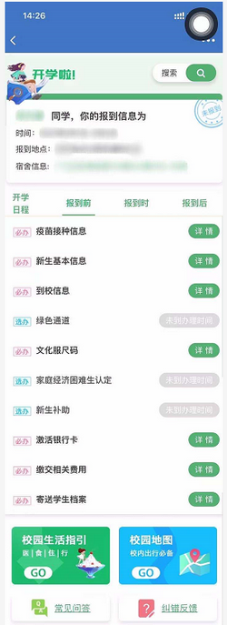 高效、便捷、用心的安排得到了學(xué)生的認可,生物醫(yī)學(xué)工程專業(yè)的顧庭葦對數(shù)字化迎新工作也是稱贊有加,“中大將智能化服務(wù)融入迎新的點滴之舉帶給了我極大便利。作為21級新生,感觸最深的便是企業(yè)微信中面面俱到、方便快捷的迎新服務(wù),它不僅以時間為依據(jù)劃分各階段應(yīng)做事宜,而且使用打卡方式將待辦事項一一列舉,時間與事件條條對應(yīng),清晰明了。”