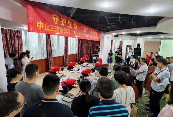 5月8日,急診黨支部專家走進中山大學,為師生普及急救技能知識(來源:附屬第三醫院)