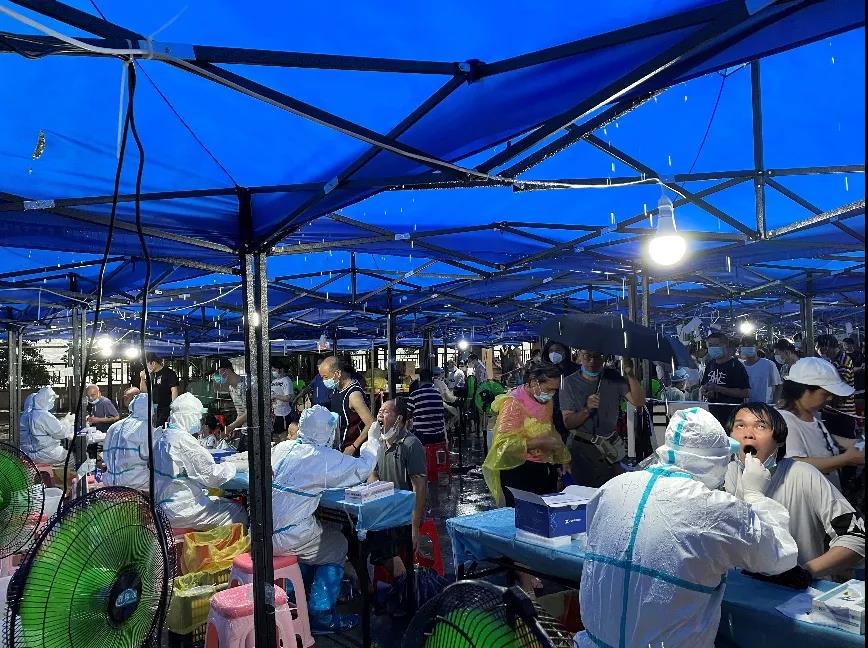 醫療隊隊員在雨中堅守,為群眾進行核酸采樣(來源:孫逸仙紀念醫院)
