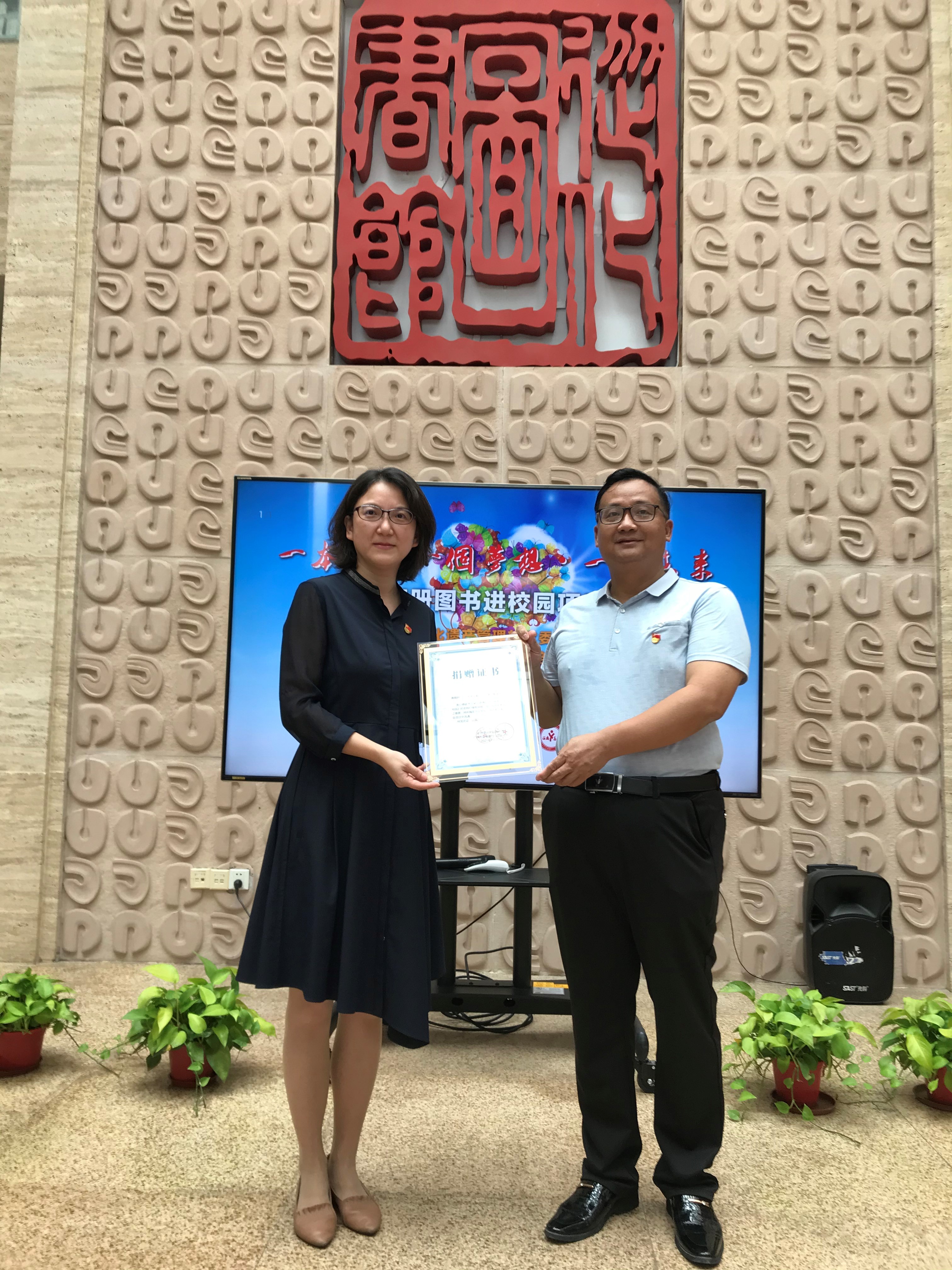 中大新聞網(wǎng)訊(通訊員何韻)7月20日,“一本書·一個(gè)夢(mèng)想·一個(gè)未來(lái)——萬(wàn)冊(cè)圖書進(jìn)校園項(xiàng)目”捐贈(zèng)儀式在從化區(qū)圖書館舉行。學(xué)校文獻(xiàn)與文化遺產(chǎn)管理部黨委副書記樊峰會(huì),圖書館副館長(zhǎng)、圖書館南校園第一黨支部書記王蕾分別代表各捐贈(zèng)單位將1300余冊(cè)少兒圖書捐贈(zèng)給從化區(qū)圖書館。該批圖書將進(jìn)入從化區(qū)圖書館“閱讀改變生命”主題教育研究公益書庫(kù),服務(wù)與改善鄉(xiāng)村教育與社會(huì)閱讀。中共從化區(qū)文廣新局黨組委員、總工程師申國(guó)海,從化區(qū)圖書館館長(zhǎng)邱躍,廣州市亞商善行公益促進(jìn)會(huì)會(huì)長(zhǎng)劉朝銘等出席了儀式。