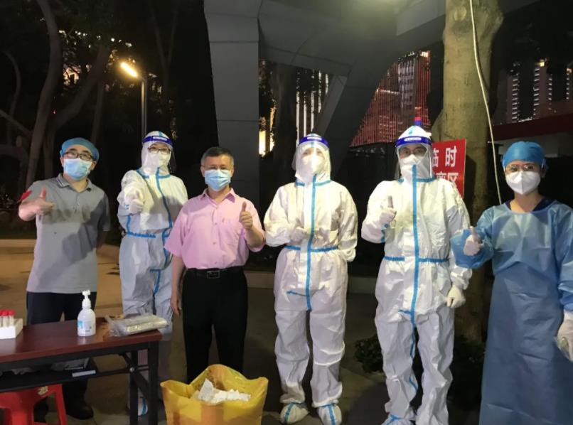 醫(yī)院領(lǐng)導(dǎo)班子分街道包片對接,行政干部蹲點一線采樣點,職能科室干事作為信息采集員,發(fā)揮臨床、醫(yī)技、藥學(xué)、社康等醫(yī)護(hù)人員主力軍作用,全員動員,分赴街道社區(qū)、學(xué)校、小區(qū)、園區(qū)、企業(yè)等開展核酸采樣工作,科研人員、博士后增援核酸檢測實驗室,全院上下高效配合,積極完成各項采樣工作任務(wù)。烈日下、燈光里,都有藍(lán)白相間的防護(hù)服忙碌的身影。