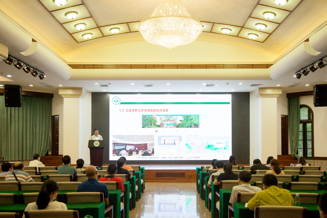 余敏斌從“加強組織領導、完善工作機制”“開展專題學習、感悟思想偉力”“突出政治引領、把握正確導向”“開展專題宣講、組織專題培訓”“為師生辦實事、開展實踐活動”“強化宣傳引導、營造濃厚氛圍”六個方面通報了學校黨史學習教育取得的階段性成果。
