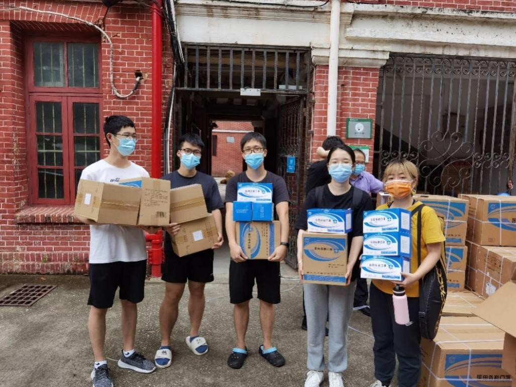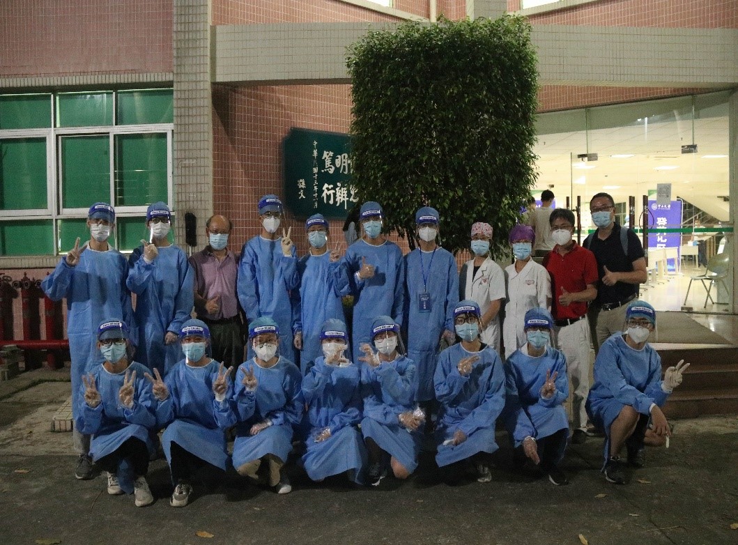 學院志愿者在完成核酸檢測任務后的合影留念(來源:中山醫學院)