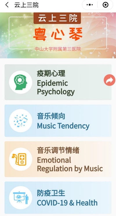 近日,附屬第三醫(yī)院優(yōu)勢學(xué)科精神心理科與人工智能團隊再次緊密配合,在原抗“疫”智能化音樂治療小程序《方艙之聲》的基礎(chǔ)上,緊急開發(fā)了微信小程序《云上三院?粵心琴》版塊,用音樂為戰(zhàn)“疫”加油。