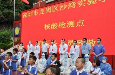 當完成沙灣實驗學校2500多名師生的核酸采集時,學校師生以滿滿的儀式感向附屬第七醫院的醫護人員表示感謝,孩子們獻上了一首《聽我說謝謝你》和一束束鮮花,以表達他們最真誠的感激之情。