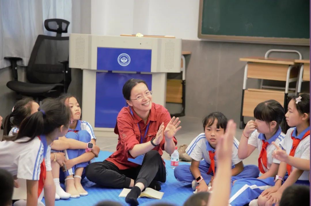 周春健教授在珠海中山大學(xué)附屬小學(xué)講黨課合影(來源:哲學(xué)系)