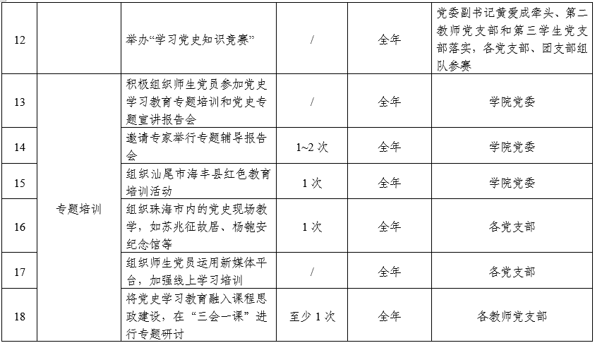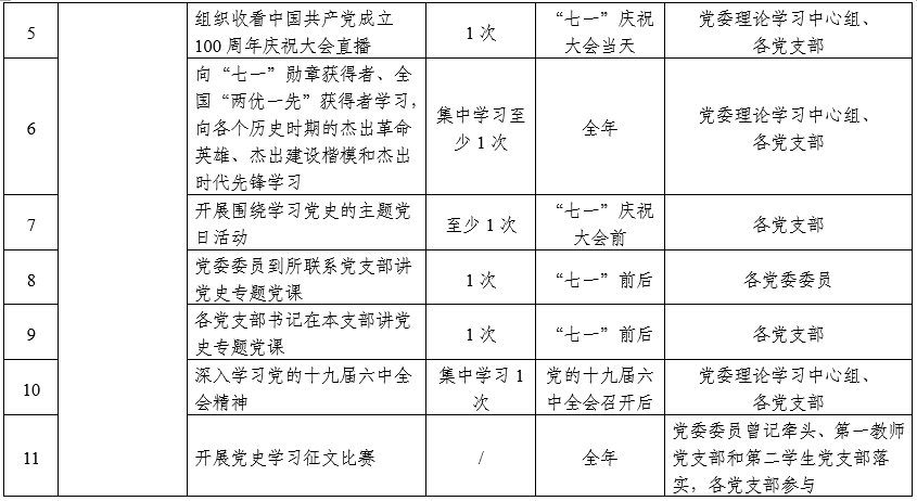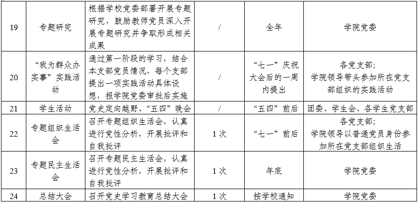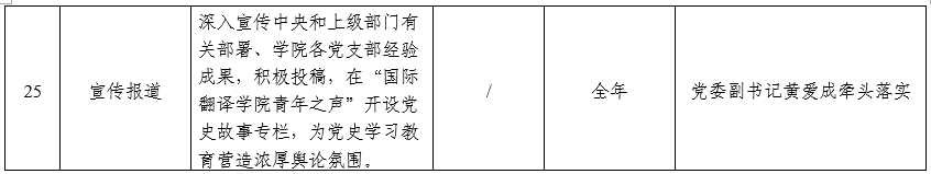國際翻譯學院黨史學習教育工作安排一覽表(來源:國際翻譯學院)