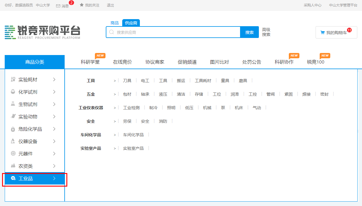 實驗材料采購平臺(來源:設備與實驗室管理處)