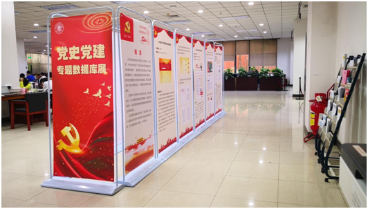 圖書館傾力打造多維度黨史黨建文化學習空間,做到三個結合,即線上與線下結合,黨建與學科專業結合,多種宣傳渠道結合。在建設“黨史黨建文獻閱覽區”的同時,推出黨史黨建專題數據庫展,向廣大師生推介“中國共產黨思想理論資源數據庫”“習近平系列重要講話數據庫”“中國知網-中國黨建期刊文獻總庫”“人民日報圖文數據庫”“愛如生紅色中華?新中華報紙庫”“抗日戰爭與近代中日關系文獻數據平臺”等六大專題數據庫。在圖書館官微平臺,推送先進黨員事跡以及具有學科特色的黨史知識和黨建事跡,如北校園圖書館“杏林往事、醫心向黨——醫科先輩優秀黨員系列”,東校園圖書館的“紅色名人與圖書館系列”,經管分館“黨的經濟建設史系列”等。