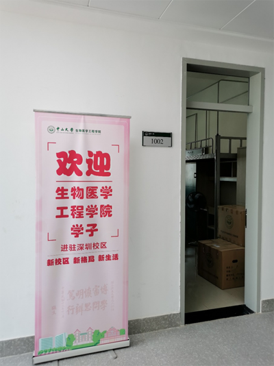 深圳校區(qū)學(xué)生宿舍區(qū)歡迎牌(圖片來源:生物醫(yī)學(xué)工程學(xué)院)