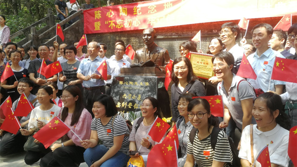 中山醫學院黨委委員、學院領導、師生代表參加陳心陶紀念地修繕竣工揭幕儀式暨“不忘初心、牢記使命”主題教育先進典型學習會(來源:中山醫學院)