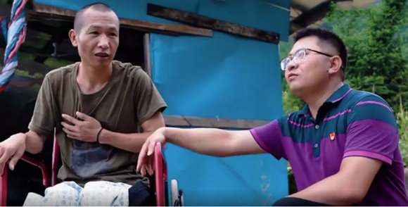 吳偉軍2018年外出打工時,在工地上被一塊大理石砸到了腰椎,意外致殘無法站立。家中上有2位老人,下有3位小孩要上學,僅其妻一人有勞動能力。李銳得知他的情況后,不管刮風還是下雨,幾乎每周都要去他家看一看,聊一聊。而當他了解到吳偉軍家有豐富的養雞經驗時,便鼓勵吳偉軍從散戶做起,支持其在自家山地果園發展山地雞養殖小產業。