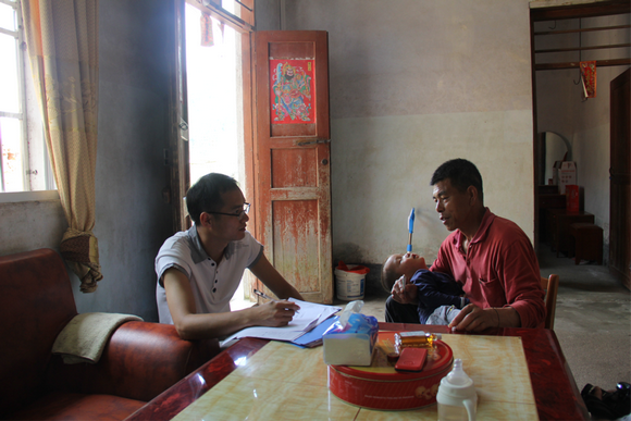 沙敏在貧困戶盤叔家中核實危房改造需求(來源:校工會)
