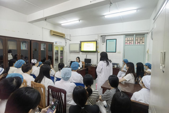 侯紅瑛、滕奔琦參加潮州市中心醫院產科早交班(來源:附屬第三醫院)