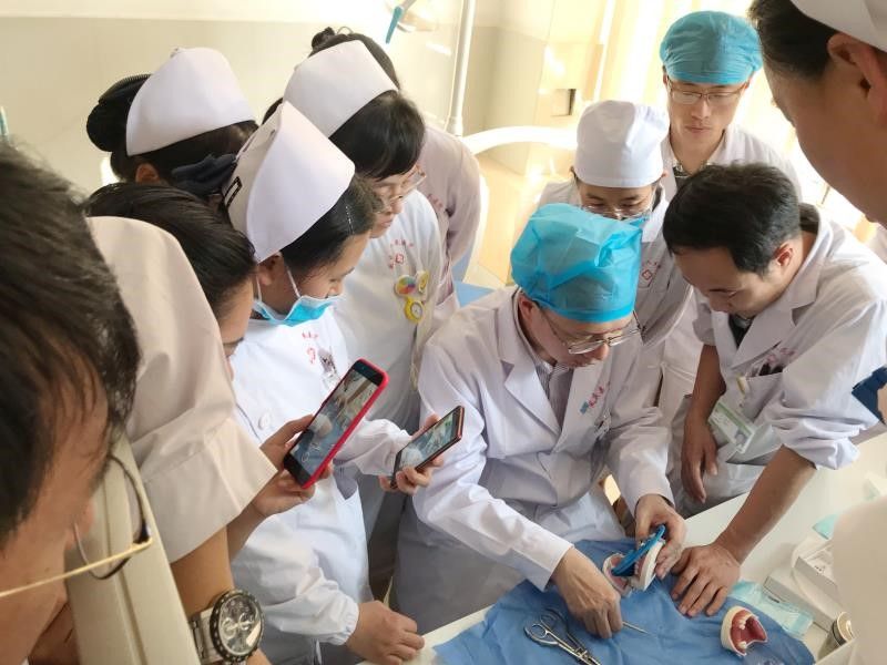 蔡華雄(左一)進行臨床示教(來源:附屬口腔醫院)