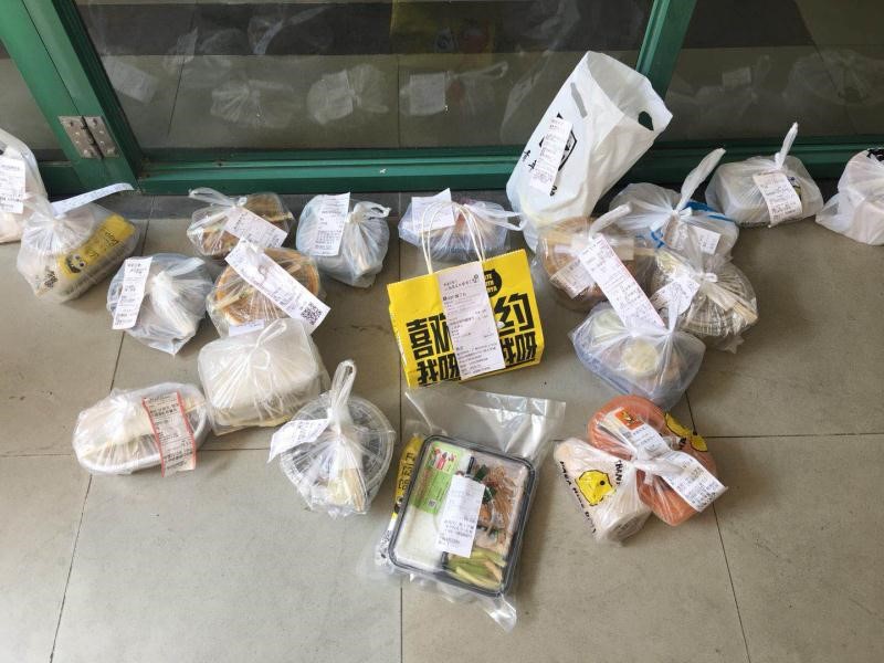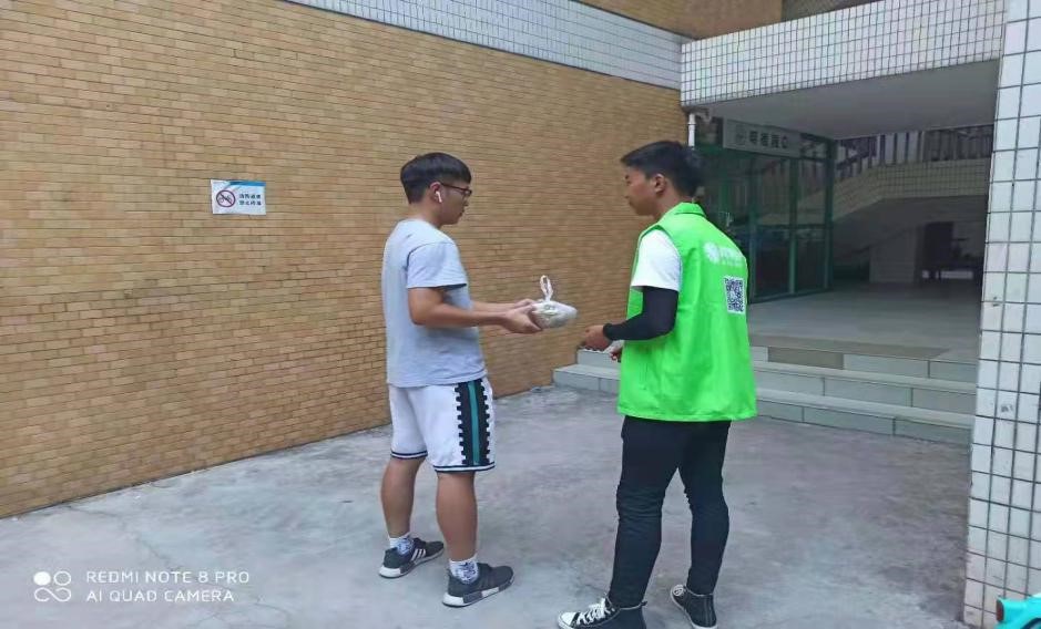 整改后外賣食品派送人員當面和師生完成食品交接確保安全