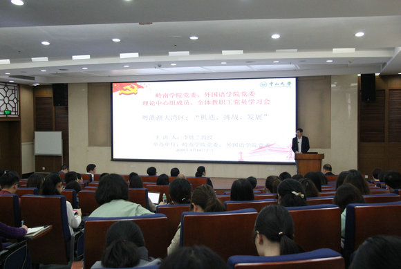 近日,嶺南學(xué)院黨委、外國語學(xué)院黨委在MBA大樓402會議室聯(lián)合舉辦了《粵港澳大灣區(qū)發(fā)展規(guī)劃綱要》學(xué)習(xí)會,邀請廣東經(jīng)濟形勢報告團宣講專家李勝蘭教授作題為“粵港澳大灣區(qū):機遇、挑戰(zhàn)、發(fā)展”的輔導(dǎo)報告。兩院黨委理論中心組成員、全體師生黨員參加了會議,會議由嶺南學(xué)院黃山書記主持。