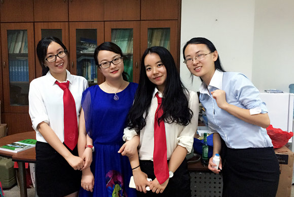 陳詩詩副書記(左二)與三位赴西藏支教的畢業(yè)生合影