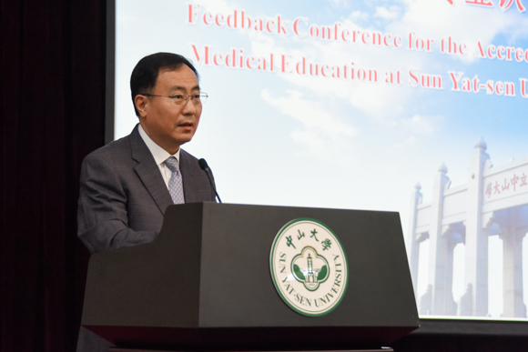 王維民教授最后講話。他說,幾天來,認證小組為中山大學師生員工的敬業精神所感動,被中山大學深厚的歷史積淀和人文氛圍所感染。在不斷的探索與創新中,中山大學遵循醫學教育標準,逐步完善醫學培養模式;勇于擔當的學校和醫學院領導,無私奉獻、踏實教學的老師們,誠實自信、尊師樂學的同學們,都給認證小組留下了深刻的印象。他再次代表認證小組對學校、各附屬醫院及服務于本次認證的工作人員表示感謝,期待中山大學繼續關注醫學教育發展趨勢,在未來的教育教學,尤其是醫學教育中,不斷進取,取得更多成績。